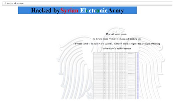 به گزارش وبسایت آیفون کانادا ، در جولای سال جاری ، ارتش سایبری سوریه صفحه وایبر را هک کرده است.